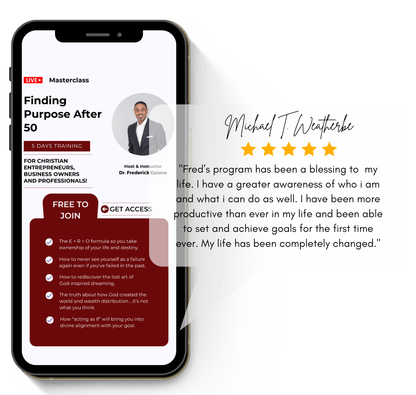 Frederick believes that success and personal fulfillment are the direct result of discovering and living your purpose, maximizing your rich potential, serving your developed gifts and talents for the betterment of humanity, and creating the world you want to live in by adopting and conforming to a goal standard.